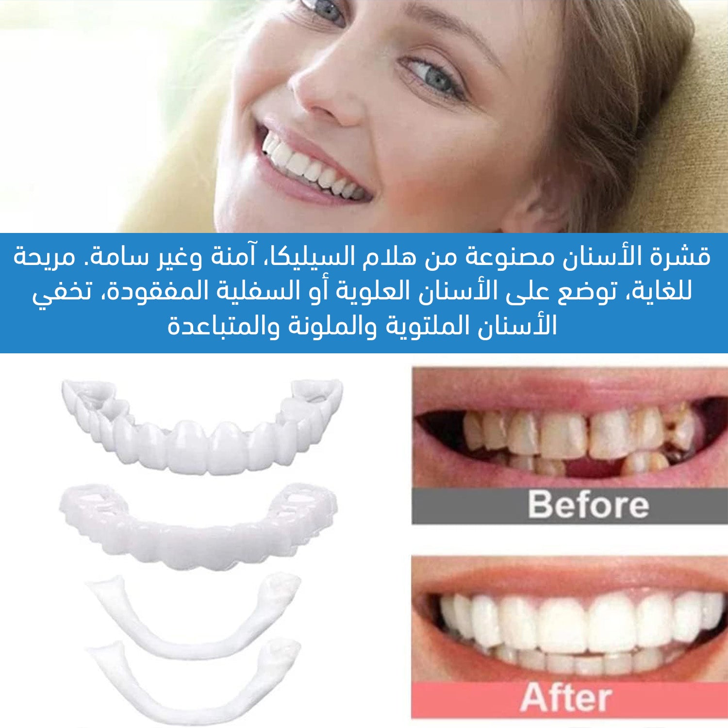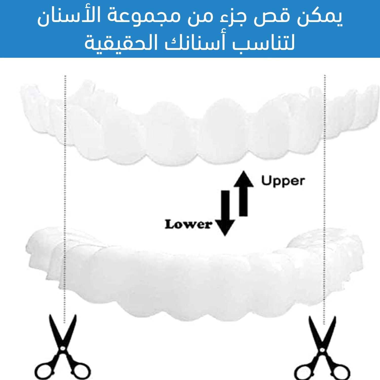 طقم اسنان سفلي قمم بقشرة أسنان مبتسمة مثالية من الأعلى والأسفل