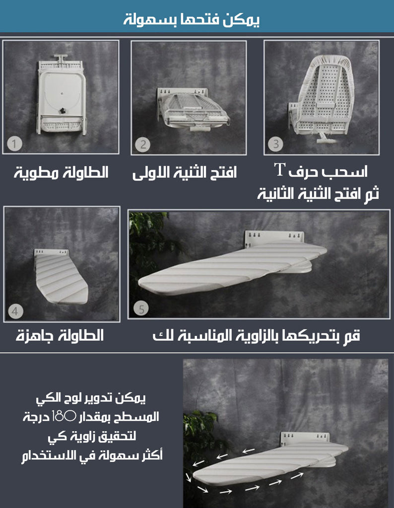 طاولة كي حائطية قابلة للطي و الدوران 180 درجة FOLDING AND ROTATING WALL IRONING BOARD