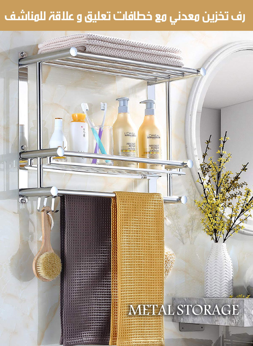 Transform your kitchen or bathroom clutter into a stylish and organized space with this versatile Metal Storage Rack with Hooks and a Towel Bar! 🧺✨ Cleverly designed to combine elegance and functionality, it's the perfect solution to declutter and maximize your space. Whether you want to hang towels, store spices, or organize your kitchen tools – this rack is your go-to! 💡