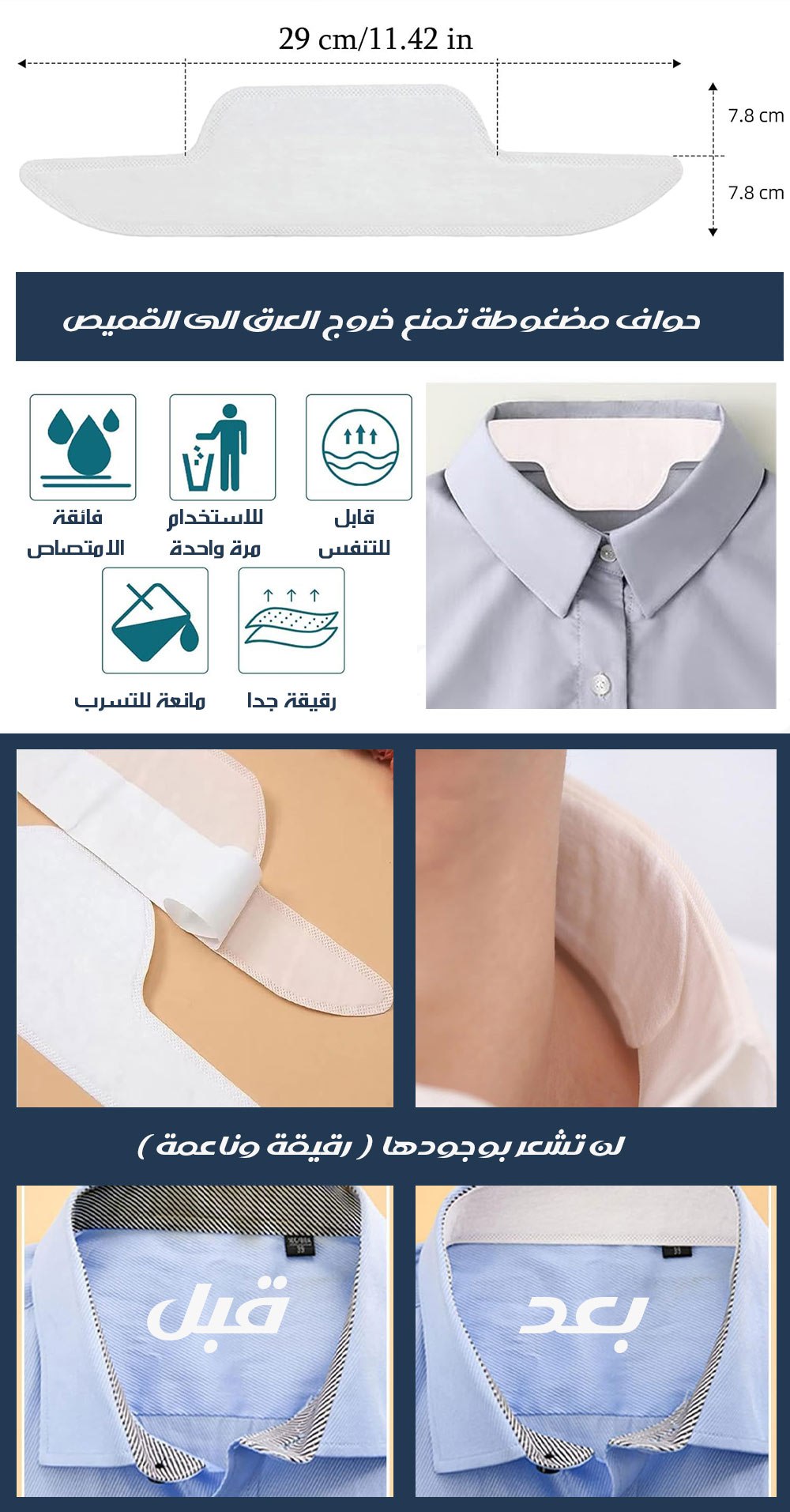 ملصقات قبّة قطنية ماصة للعرق لمرة واحدة Disposable Shirt Collar Stickers