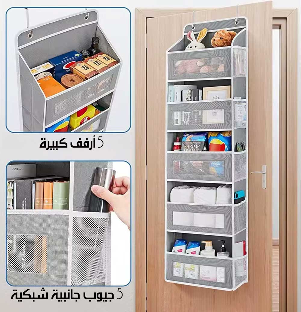 ضاعف مساحة التخزين لديك بسهولة وذكاء مع منظم الباب المعلق بخمسة أرفف عملية! 🛍️✨ مثالي لتنظيم كل شيء من مستحضرات التجميل إلى الأدوات المكتبية وألعاب الأطفال، هذا المنظم يمنحك النظام الذي طالما حلمتِ به دون الحاجة لأي حفر أو تثبيت معقّد! مصمم ليناسب معظم الأبواب، ويضفي لمسة جمالية وعملية لأي غرفة في المنزل 🚪💫.