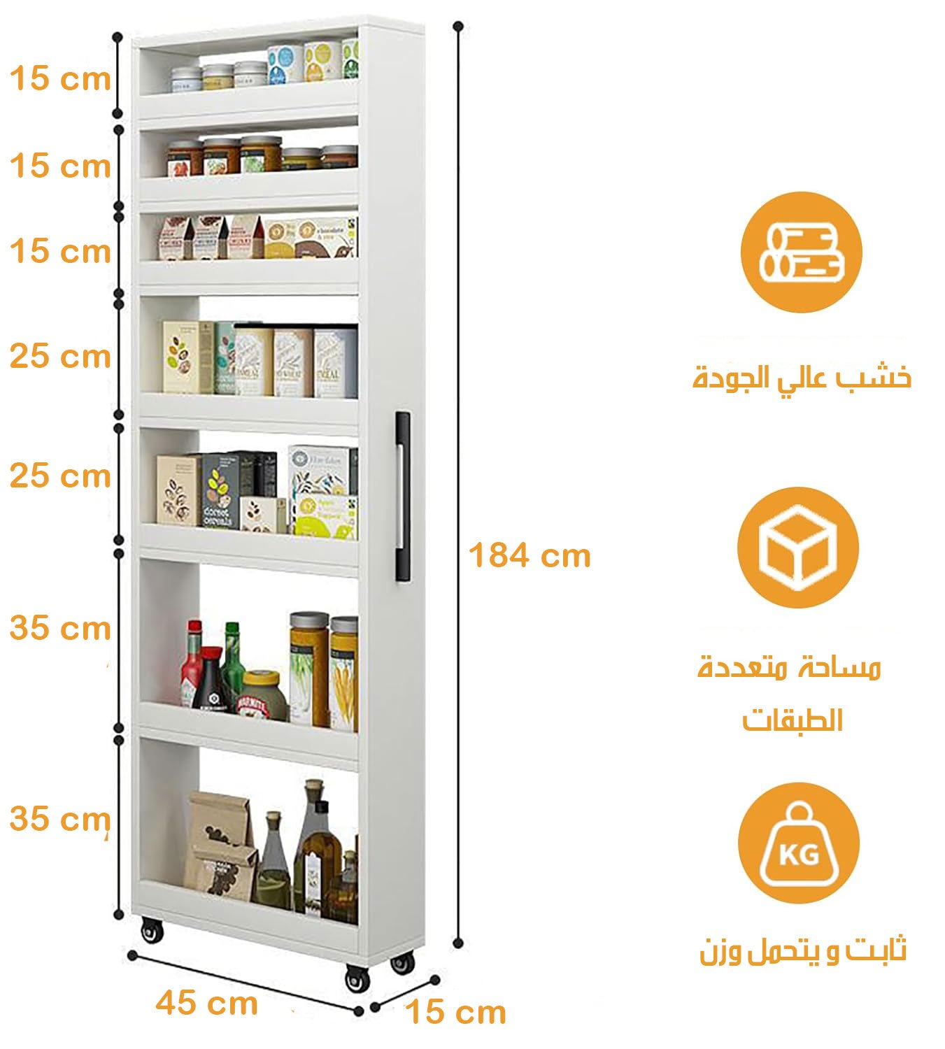 • ✨ تصميم نحيف بسبع طبقات مثالي للأماكن الضيقة مثل بين الثلاجة والجدار أو خلف الباب 🚪📦